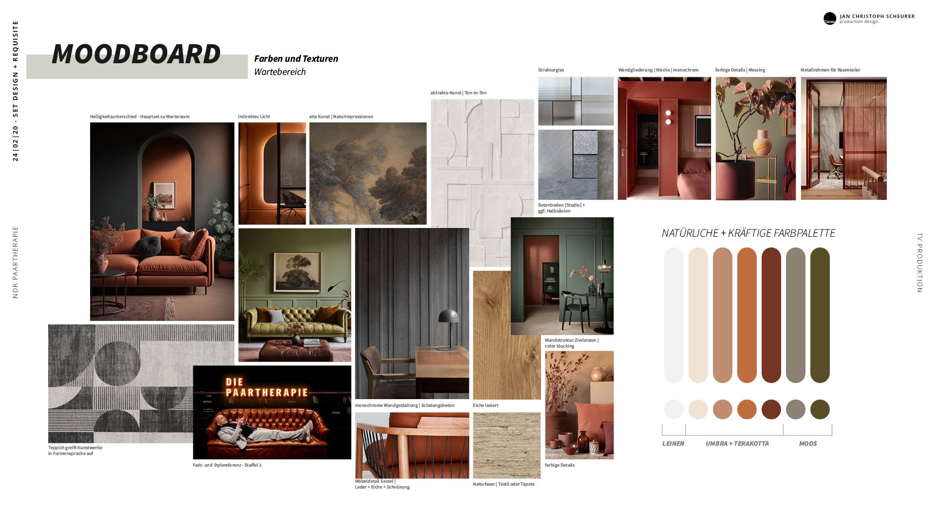 Originally commissioned as an extension, I developed the project into a complete redesign of the existing set. Based on an analysis of spatial, functional, and dramaturgical shortcomings, I created a new concept in close collaboration with the NDR workshops, including material sampling, color testing, cross-department coordination, and the implementation of structural and fire safety standards.