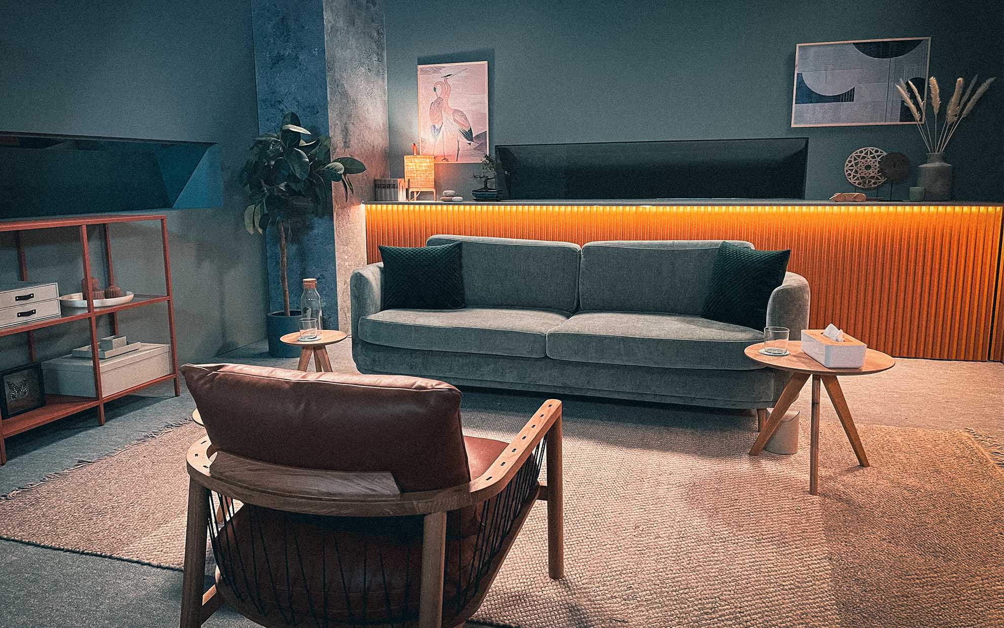 Rather than clinical or contemporary aesthetics, I referenced culturally familiar interiors of the 1960s and 70s. Warm woods, human-scaled furniture, and intimate proportions create trust, while maintaining an abstract, timeless quality.